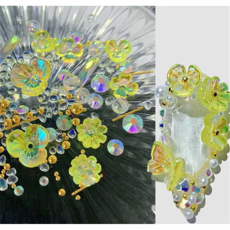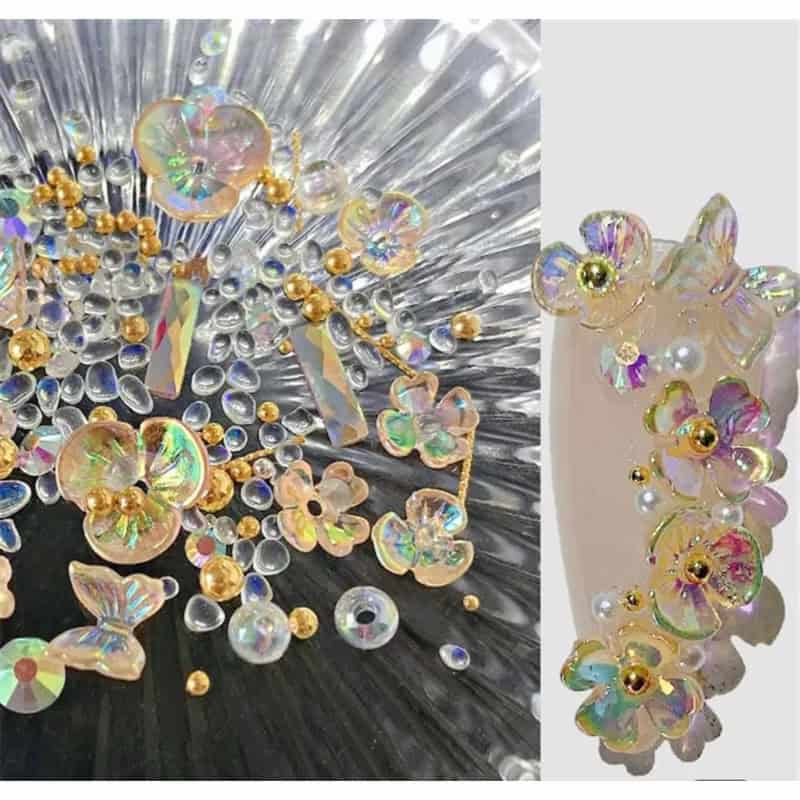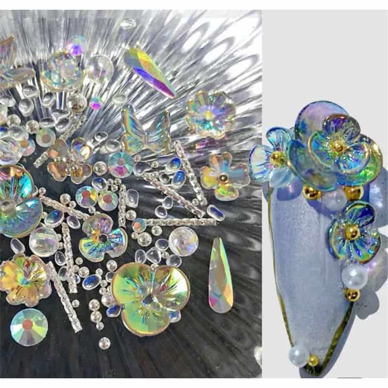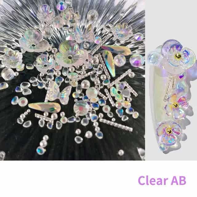 1 jar AB Crystal Flower Butterfly Nail Art Decorations Mix Metal Rivets Pearls