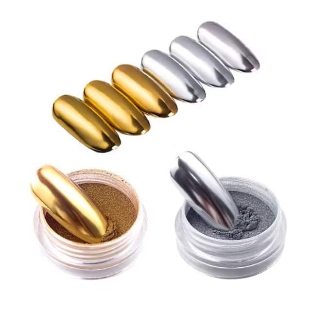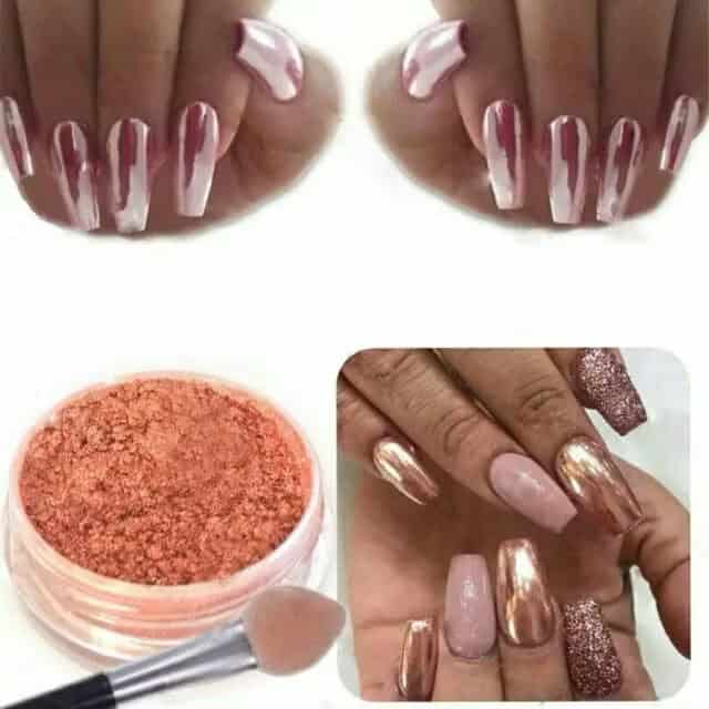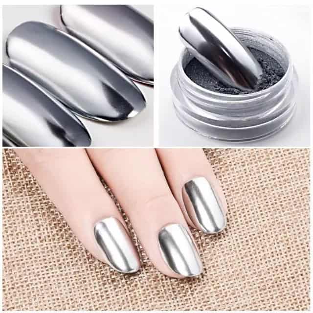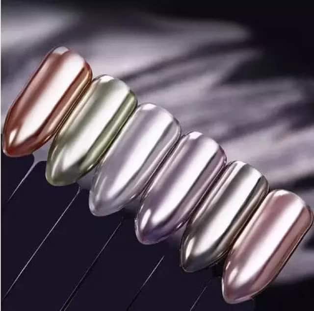4.Use eyeshadow stick or silicone brush to pick the powder and burnish it onto your nails.
