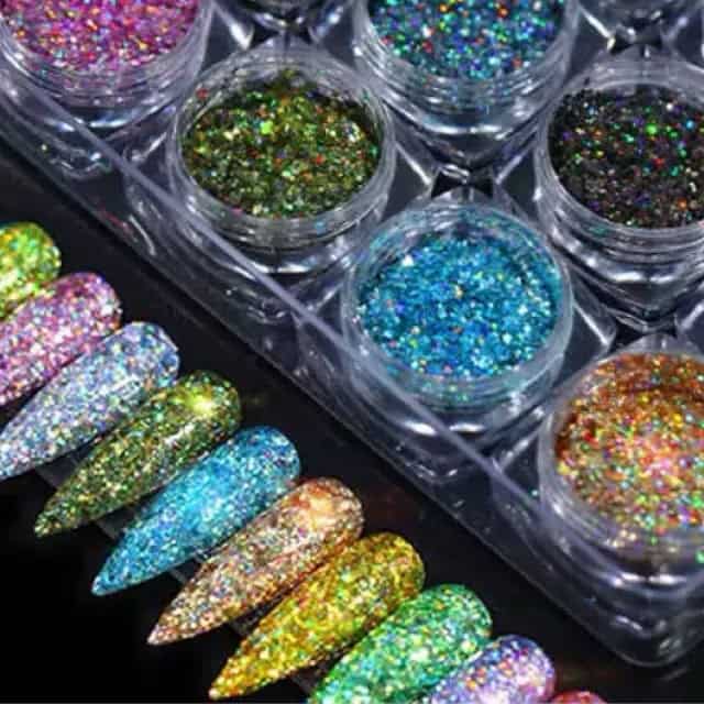 Dazzling, eye-catching nail art accessories for daily decoration,Holographic Effect: Widely color varieties can create a variety of dazzling nail designs.Meet your decoration and DIY needs. Fit for both professional use or home use.