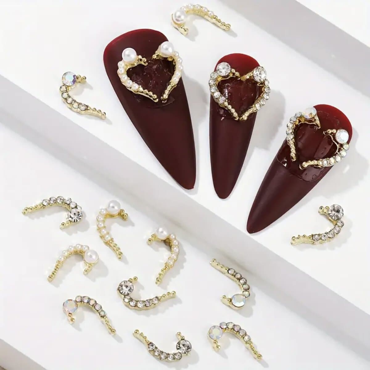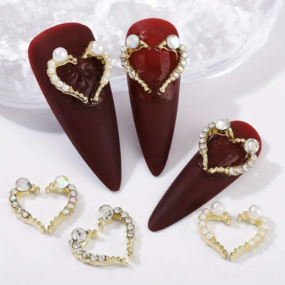 10pcs Half Heart Nail Art Rhinestone Charms