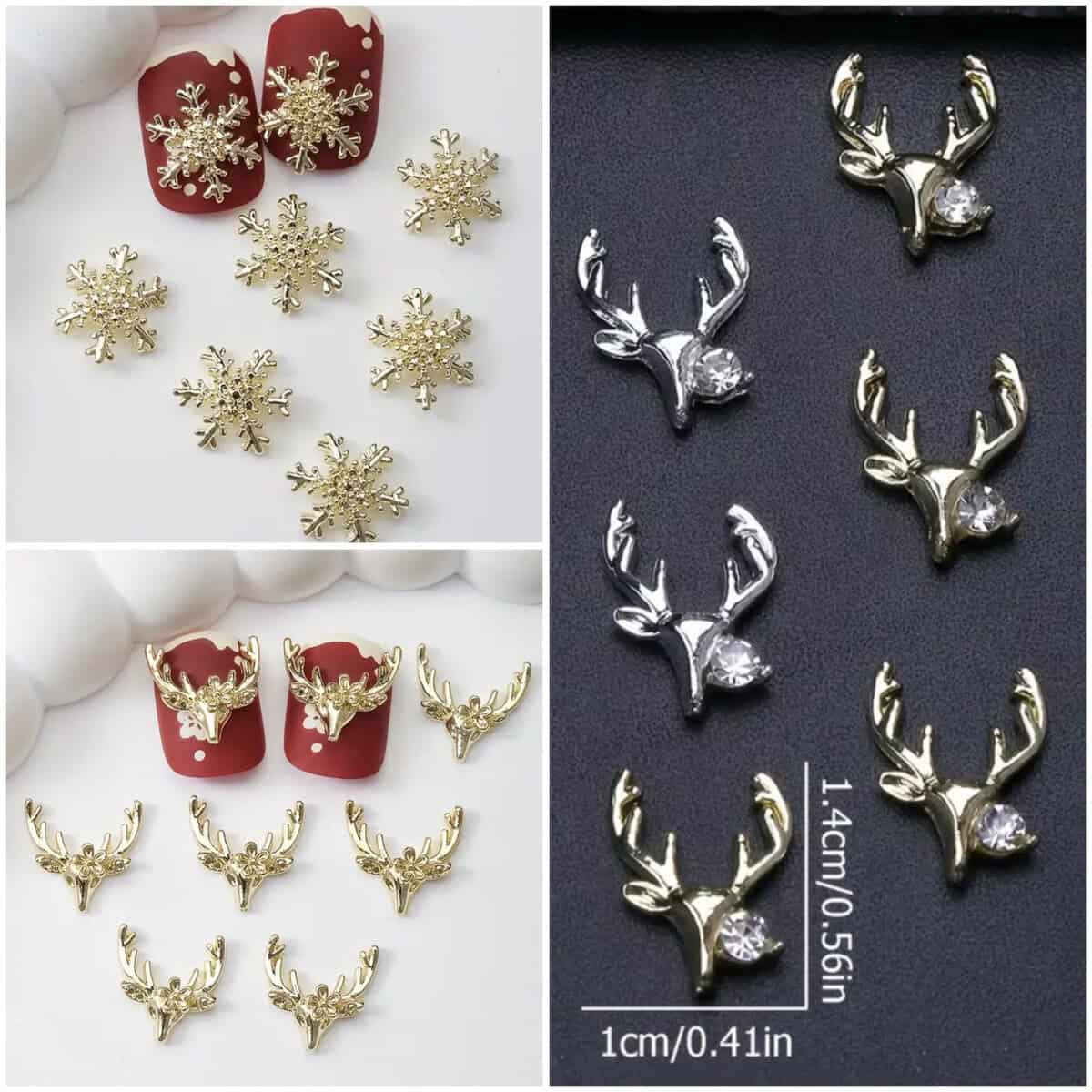 10pcs/pack Christmas Theme Deer Snowflakes Nail Decor