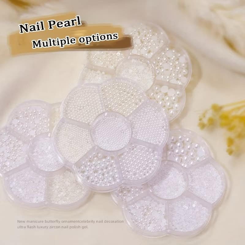 12 Grid Half or Full Pearl Beads Nail Art Decor