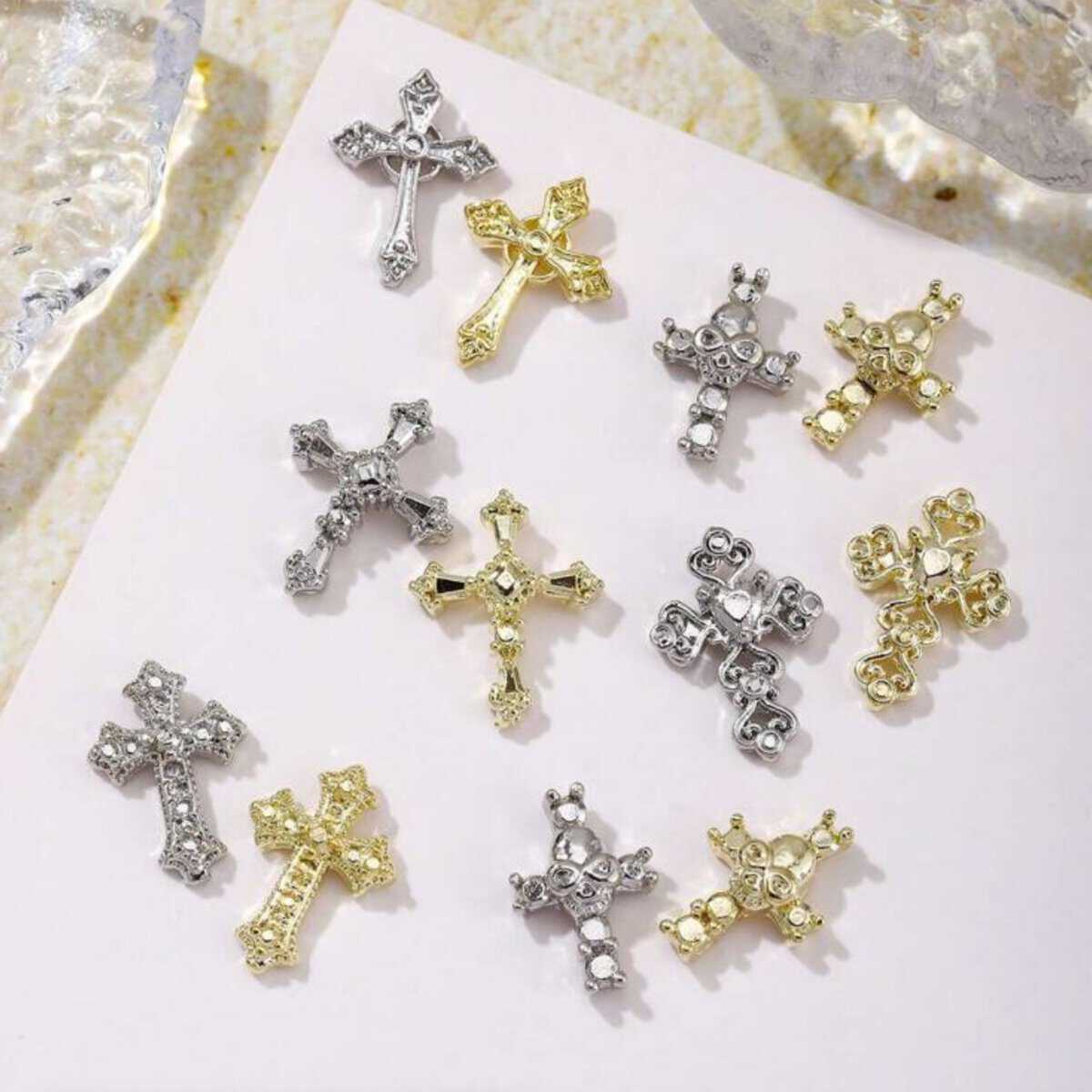 10pcs/pack Cross Crucifix Metal Alloy Nail Art Charms
