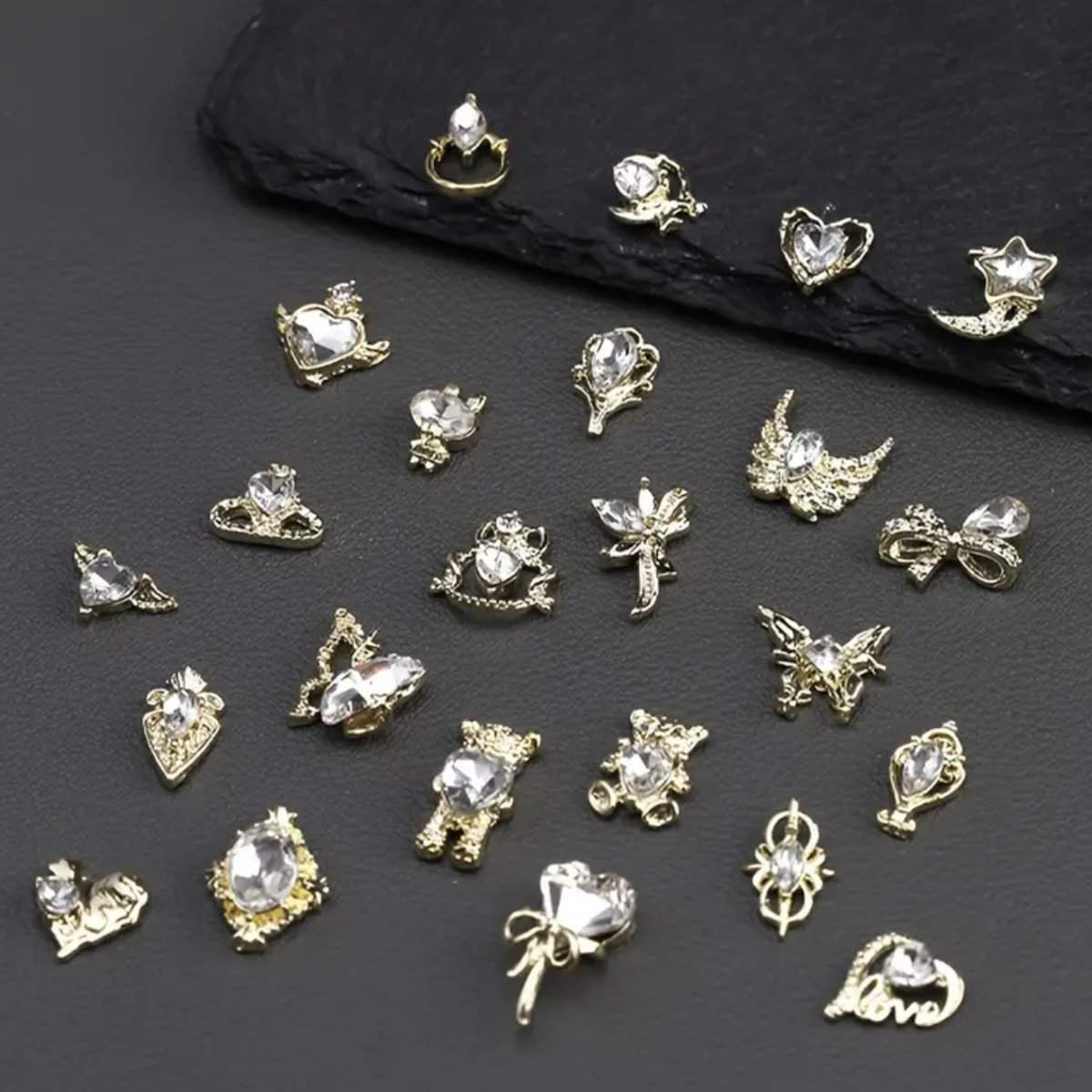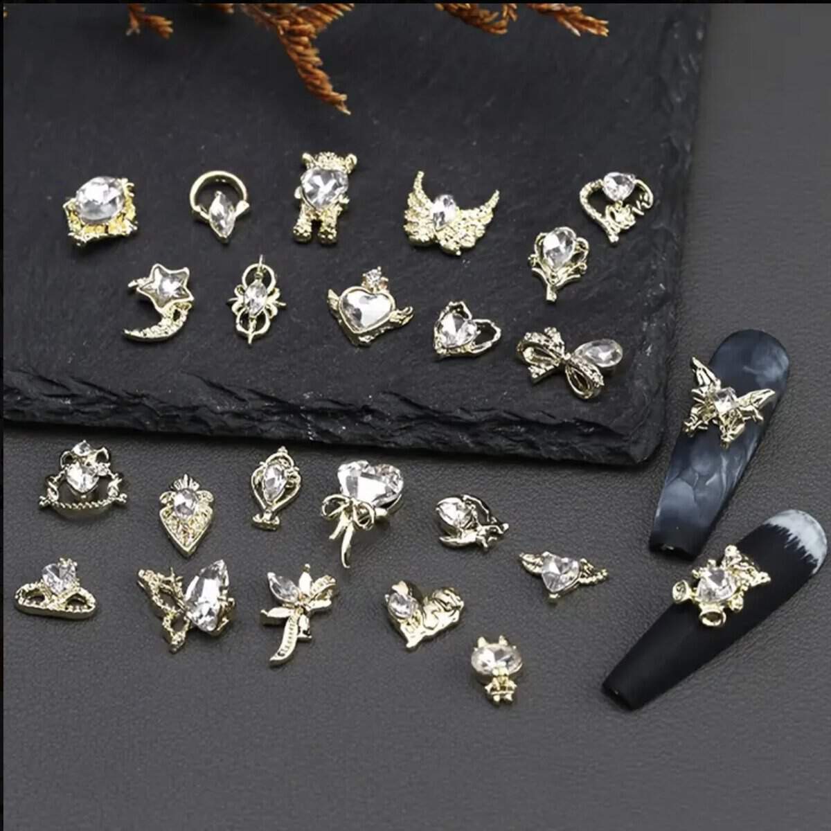 10pcs/pack Mixed Gold with Rhinestones Nail Art Charms