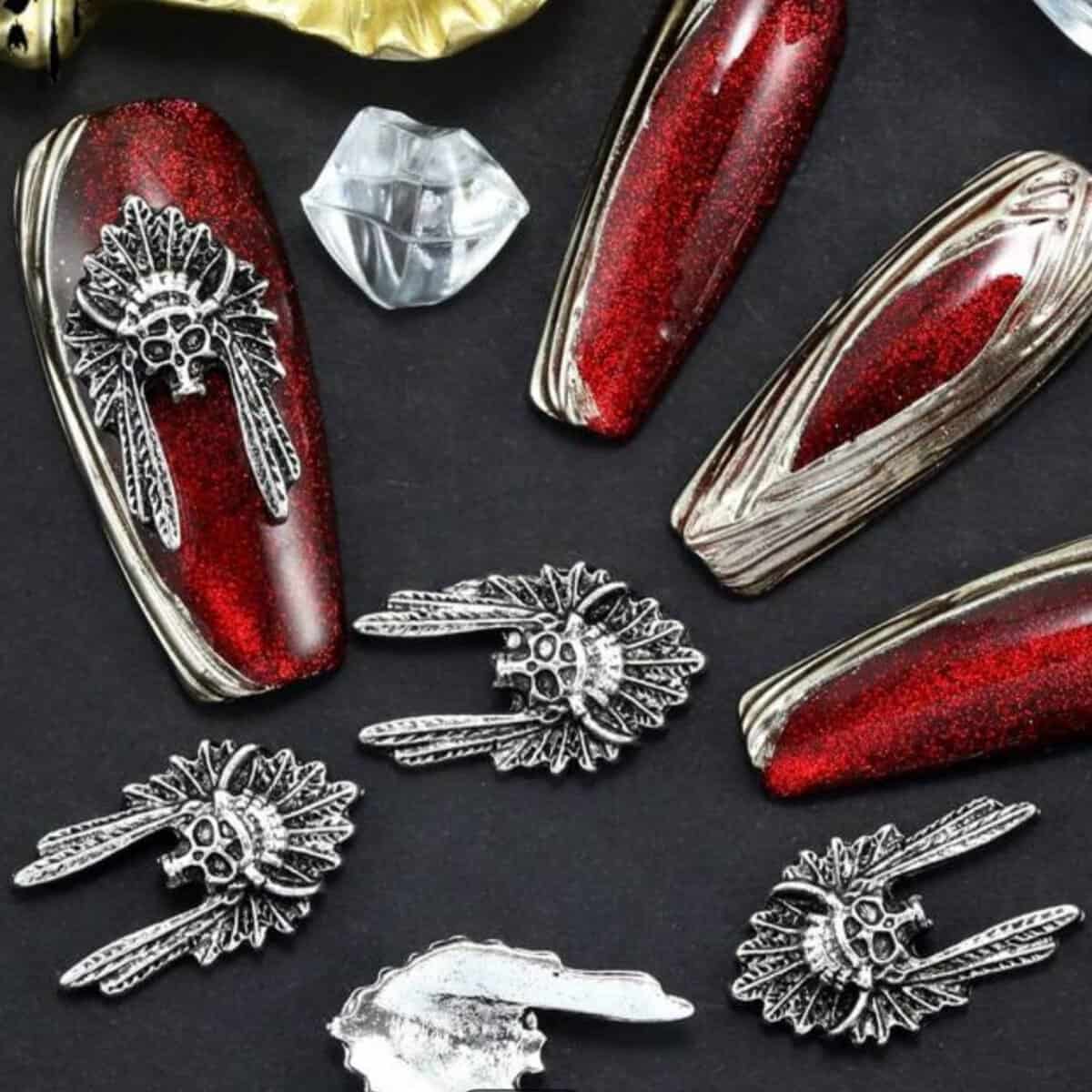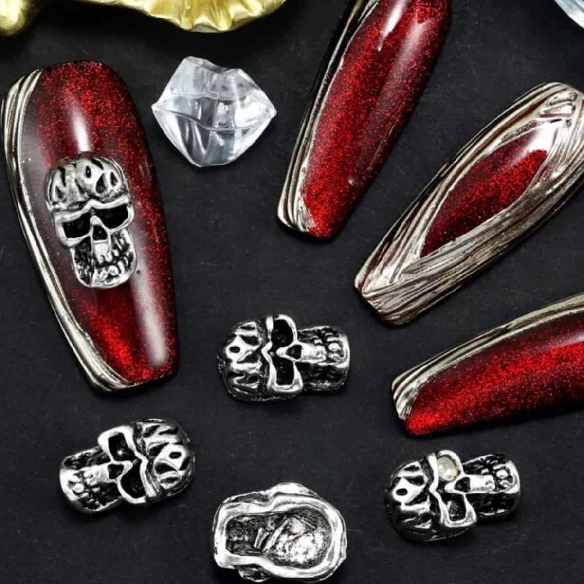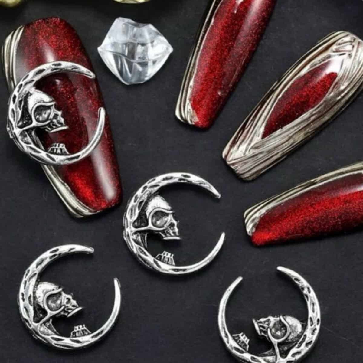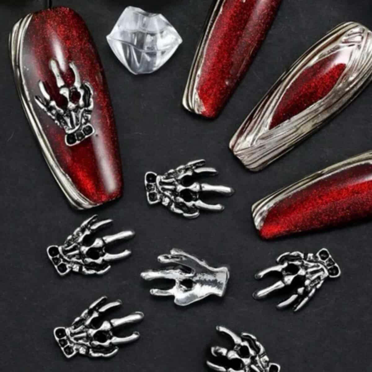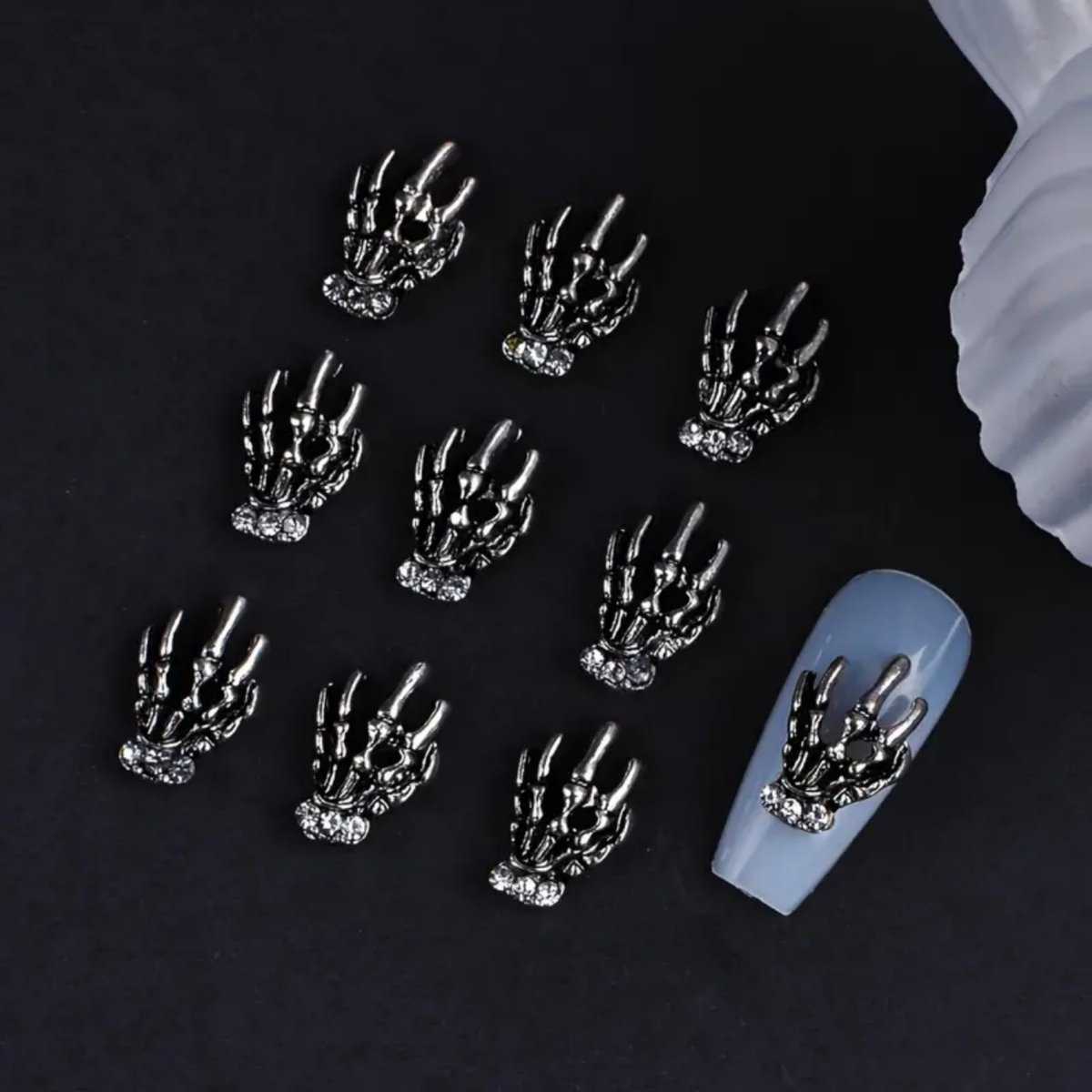 10pcs Retro Punk Halloween Metal Alloy Silver Gray Dark Nail Art Charms
