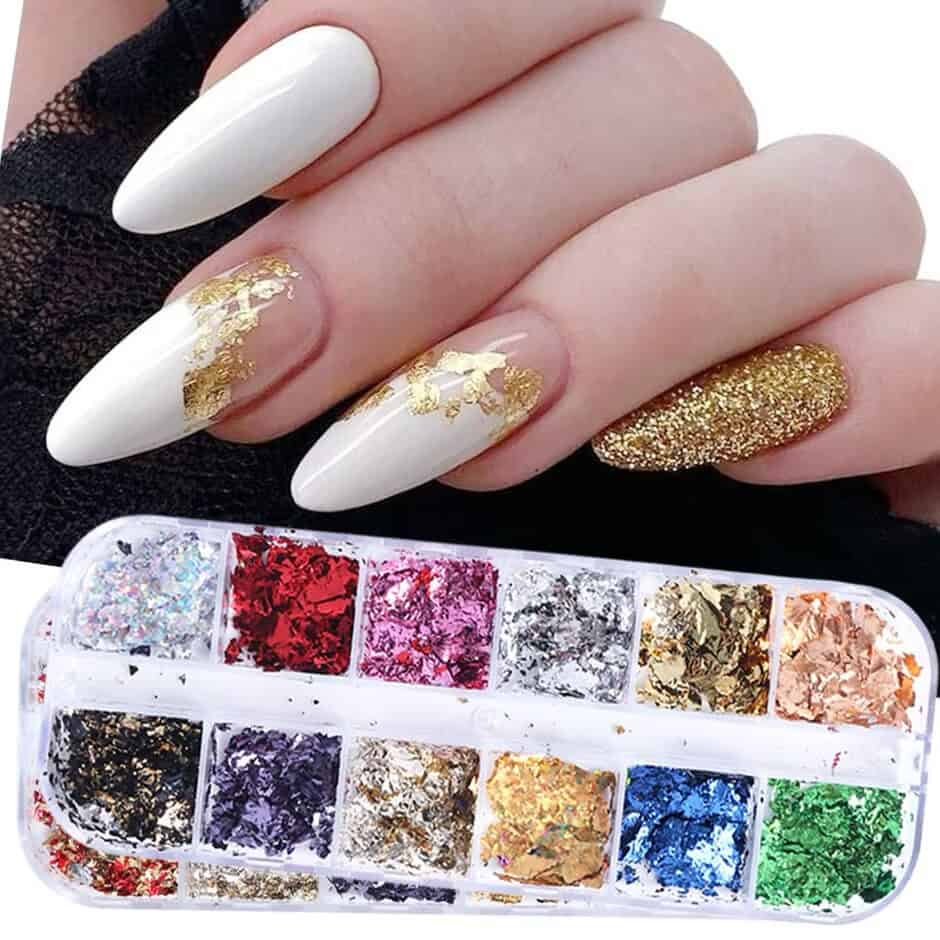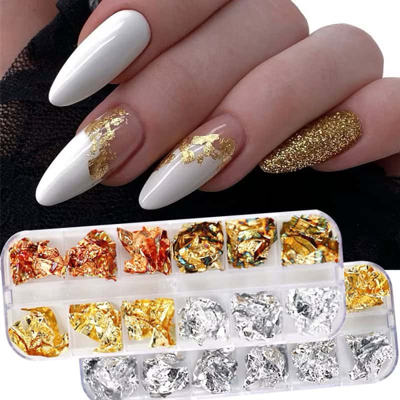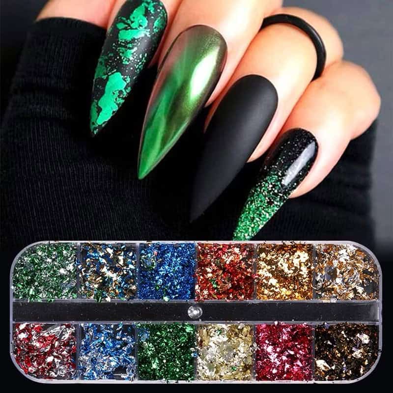 12 Grid Chrome Metallic Foil Flakes Sheet