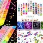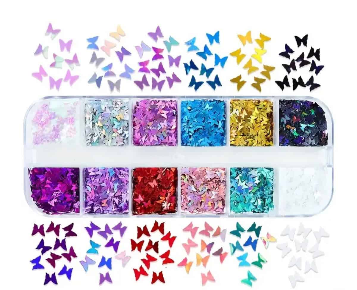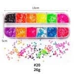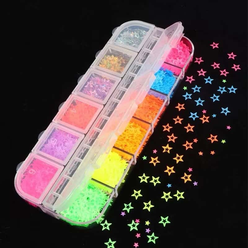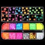12 Grids Mixed Shapes/Sizes Neon Metallic Star / Butterfly Heart Circle Glitter Sequins Nail Decor