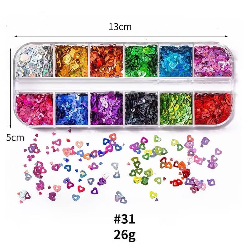 12 Grids Mixed Shapes & Color Nail Sequins