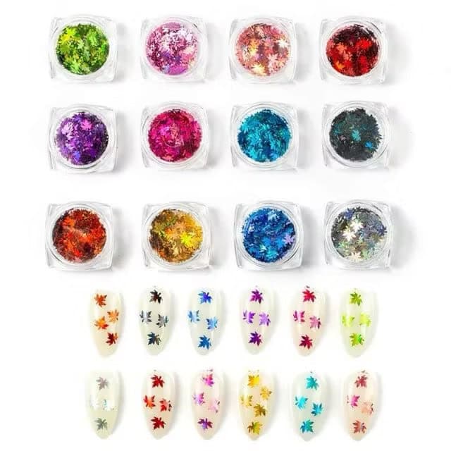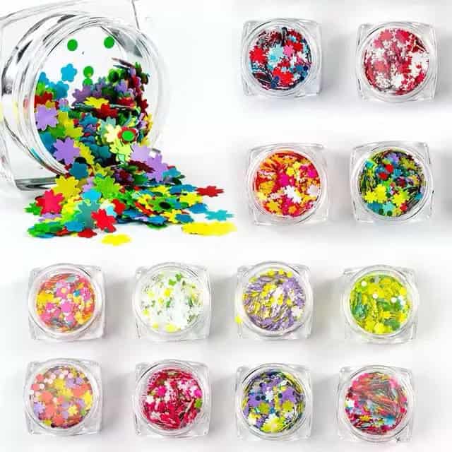 12 pots Nail Art Sequins Nature Shapes