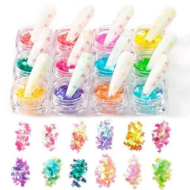 -Fluorescent butterfly shape nail art glitter sequins
