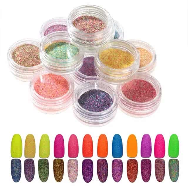 Package Contents: 12 Pots Nail Art Glitter Powder
