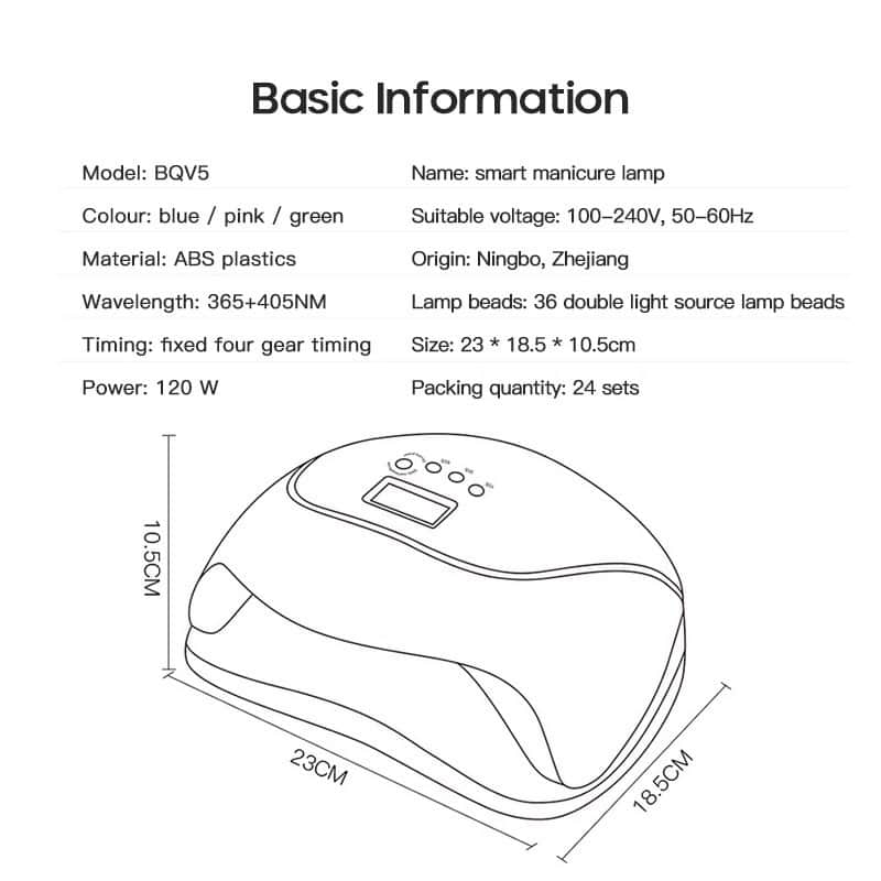 With a new UV+LED dual light source, the BQ5T nail dryer is applicable to curing nail gels, with white light, no harm to eyes and skin.