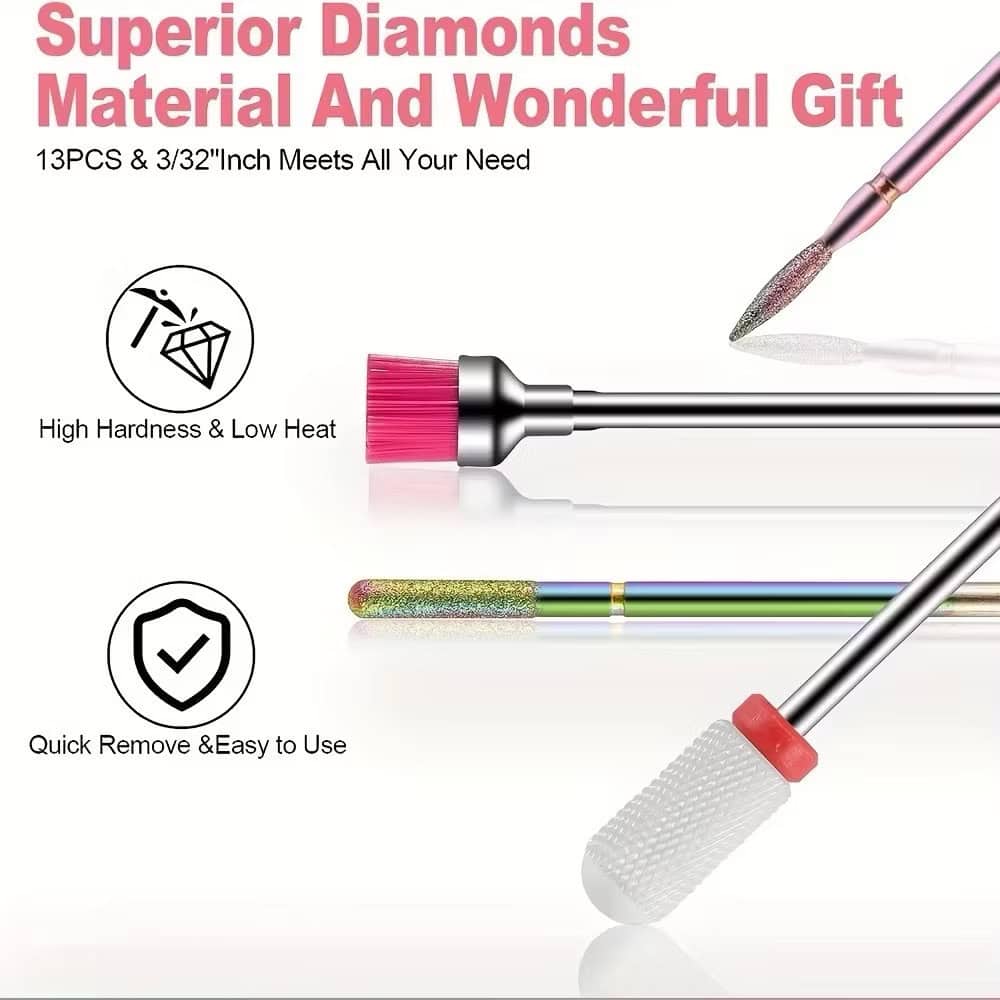 13Pcs Ceramic and Diamond Nail Drill Bits Set