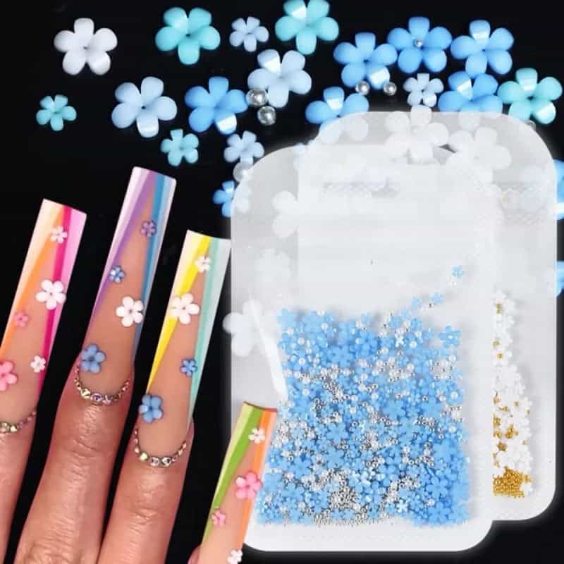 1pack Floral with beads Nail Decor