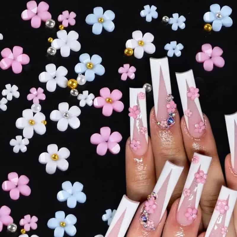 styles: floral with beads nail decoration