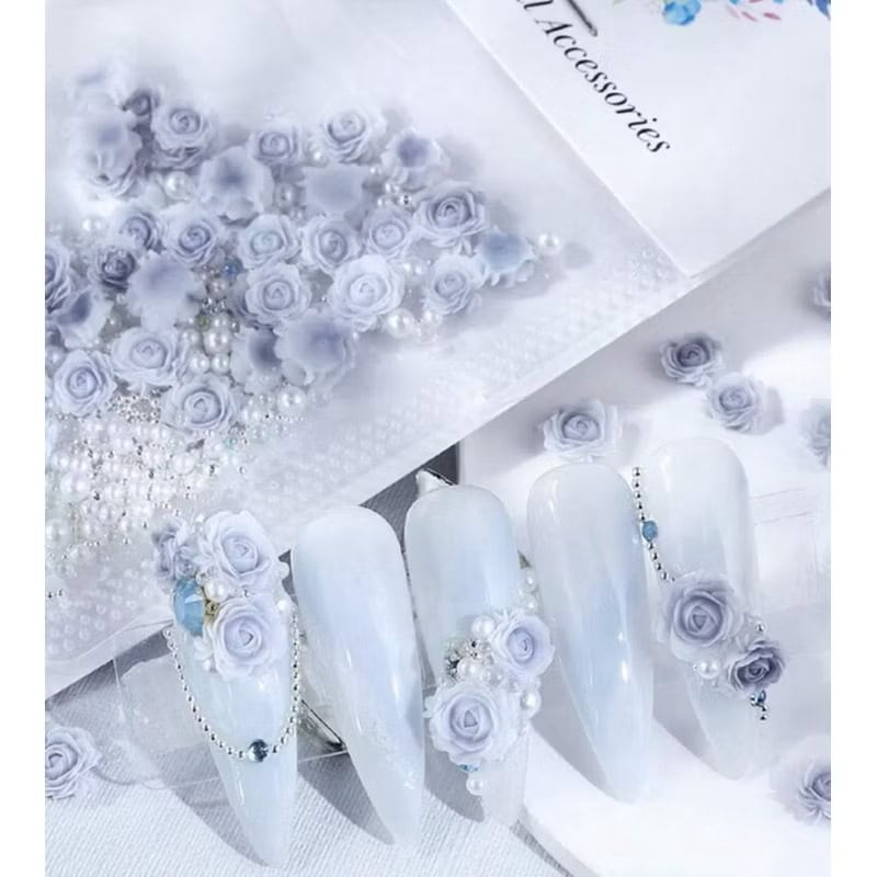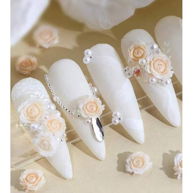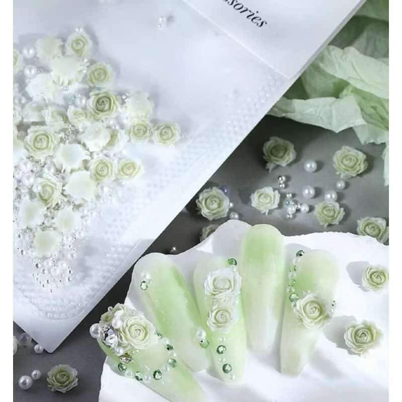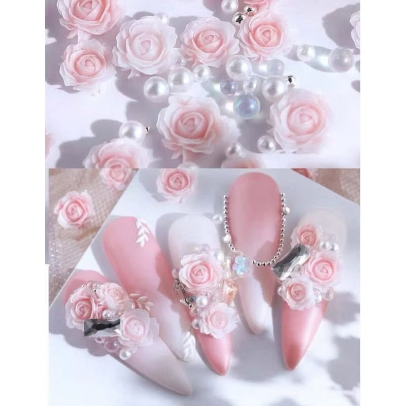 30Pcs Kawaii Carved Roses Nail Charms Roses Flower Nail Parts Valentine’s Day Decoration Nail Accessories For Nail Art Supplies Professionals