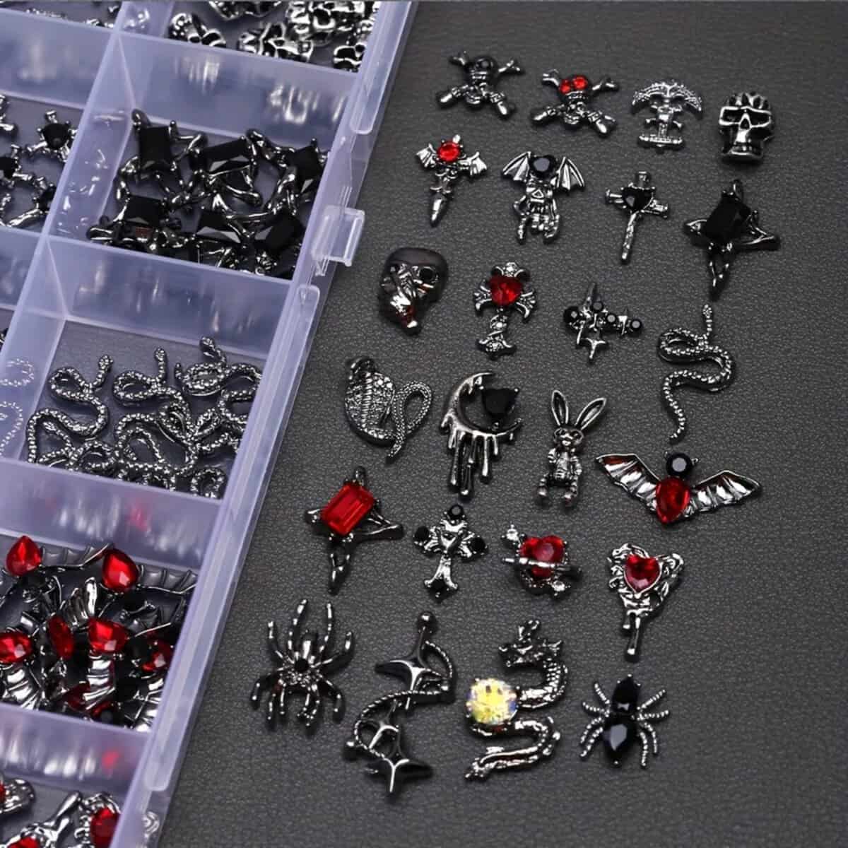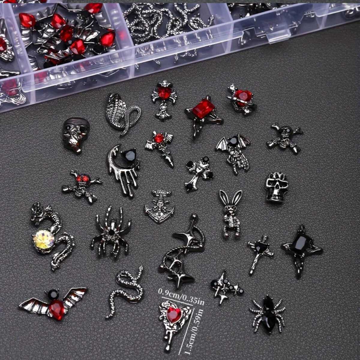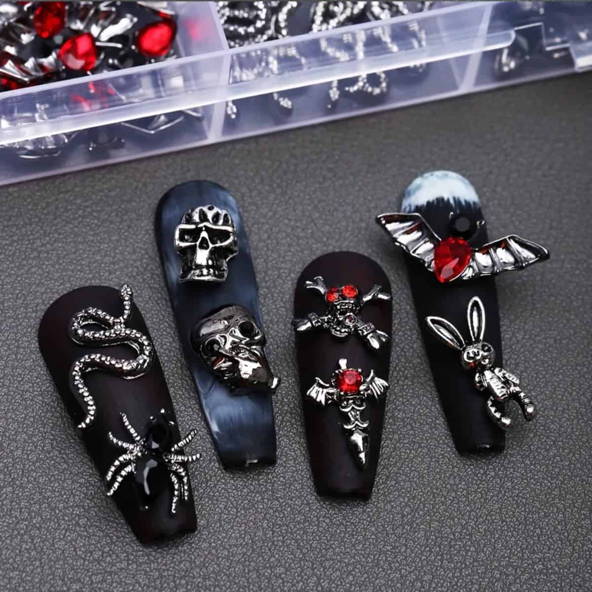 240pcs/box Punk style Halloween Cross -Armor Metal Nail Charms Heart shaped Nails Diamond