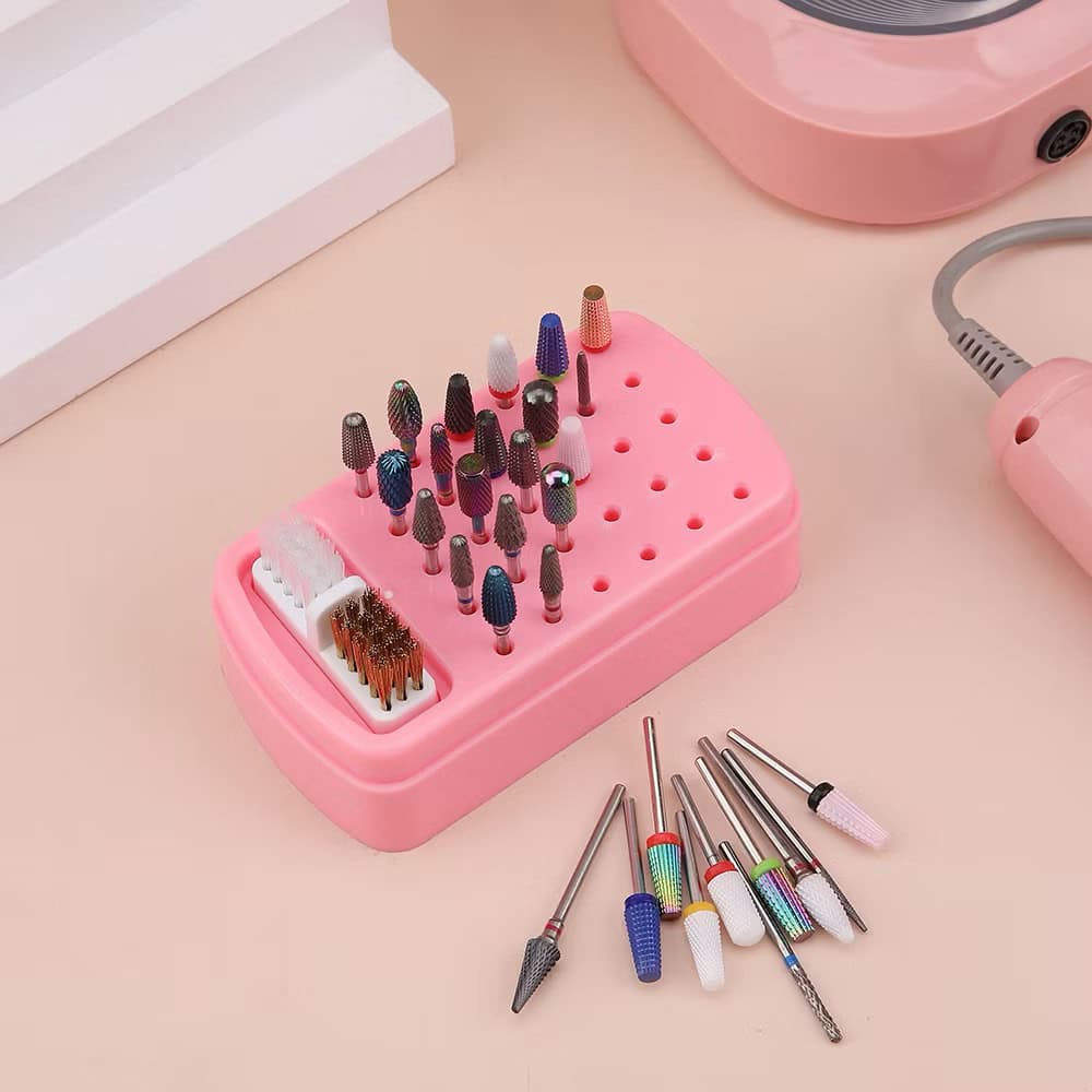 Nail Drill Bit Storage with Cleaning Sanding Head Brush