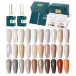 33PCS BLG-NUDE Brown Gel Polish Series AS AnotherSexy Green Bottle with Chart, Top Coat, Base Coat and Primer