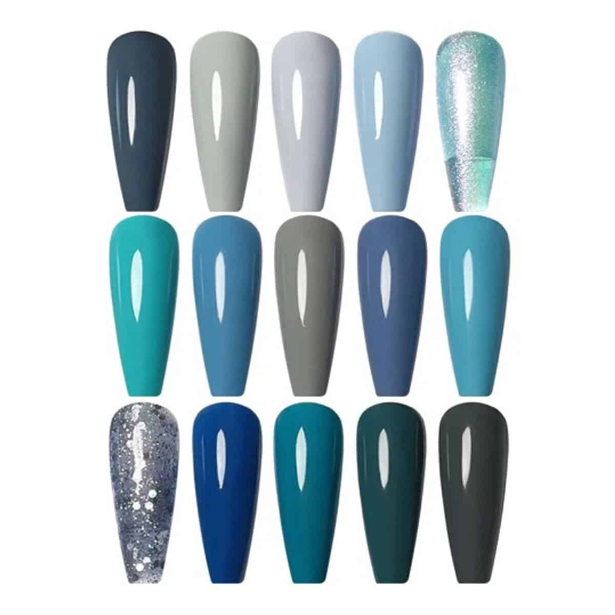 33PCS BLR-BLUE SERIES AS AnotherSexy Gel Polish Green Bottle with Chart, Top Coat, Base Coat and Primer