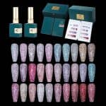 33PCS BRD-Reflective Gel Polish Series AS AnotherSexy Green Bottle with Chart, Top Coat, Base Coat and Primer