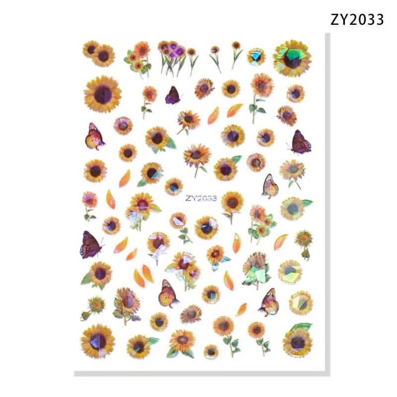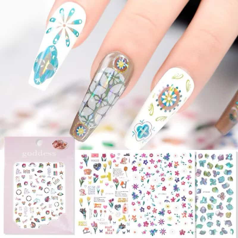 3d holographic hexagon pattern laser clover ballet shoes ribbon decals sunflower nail sticker