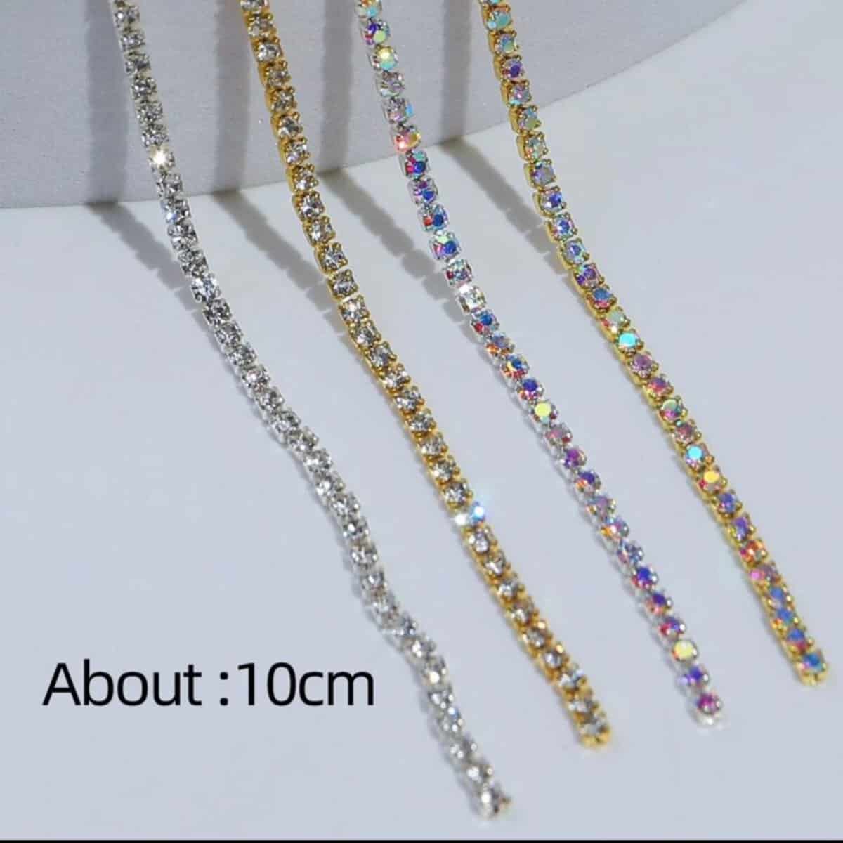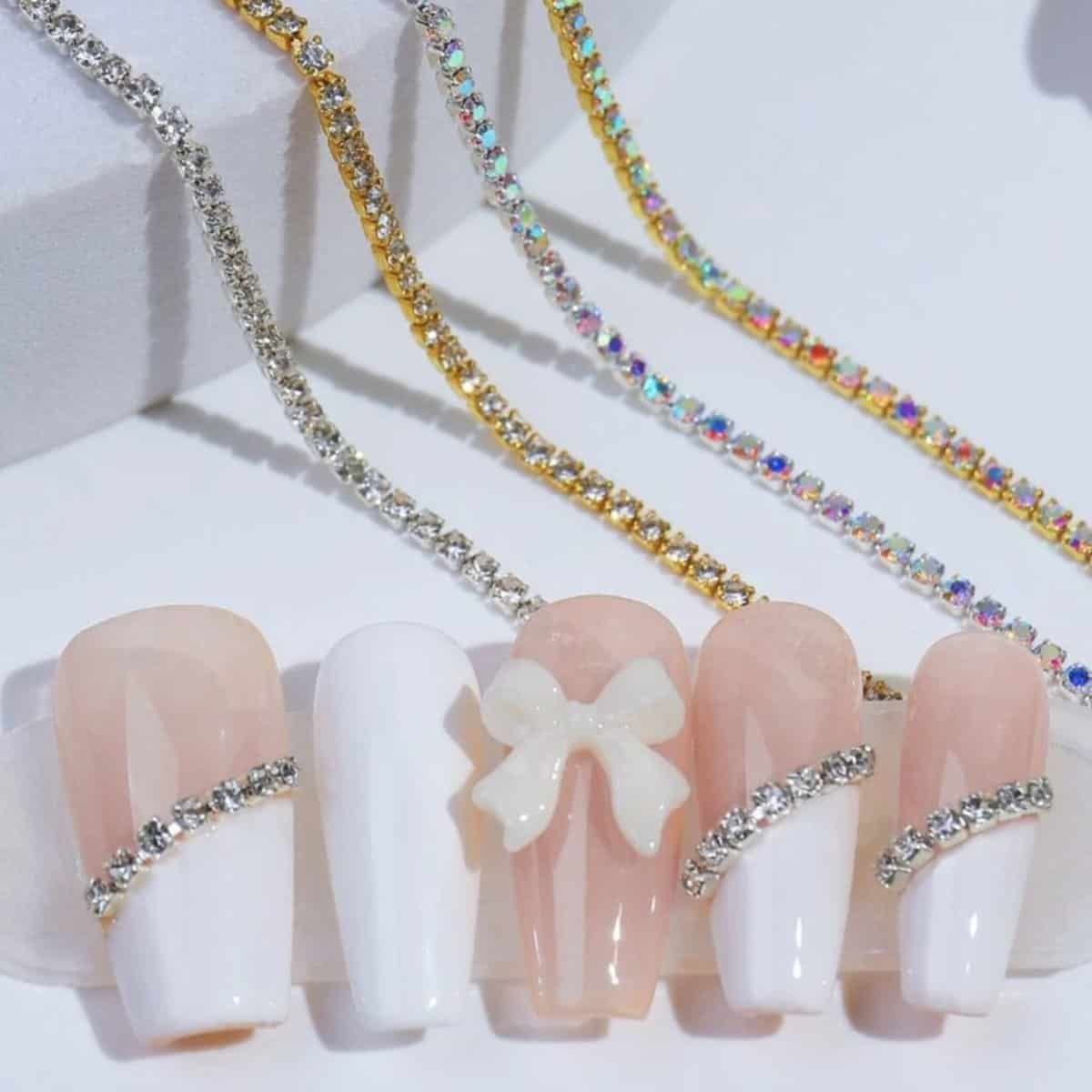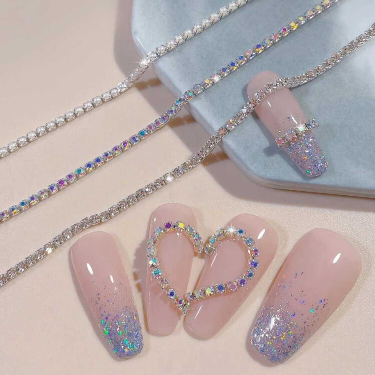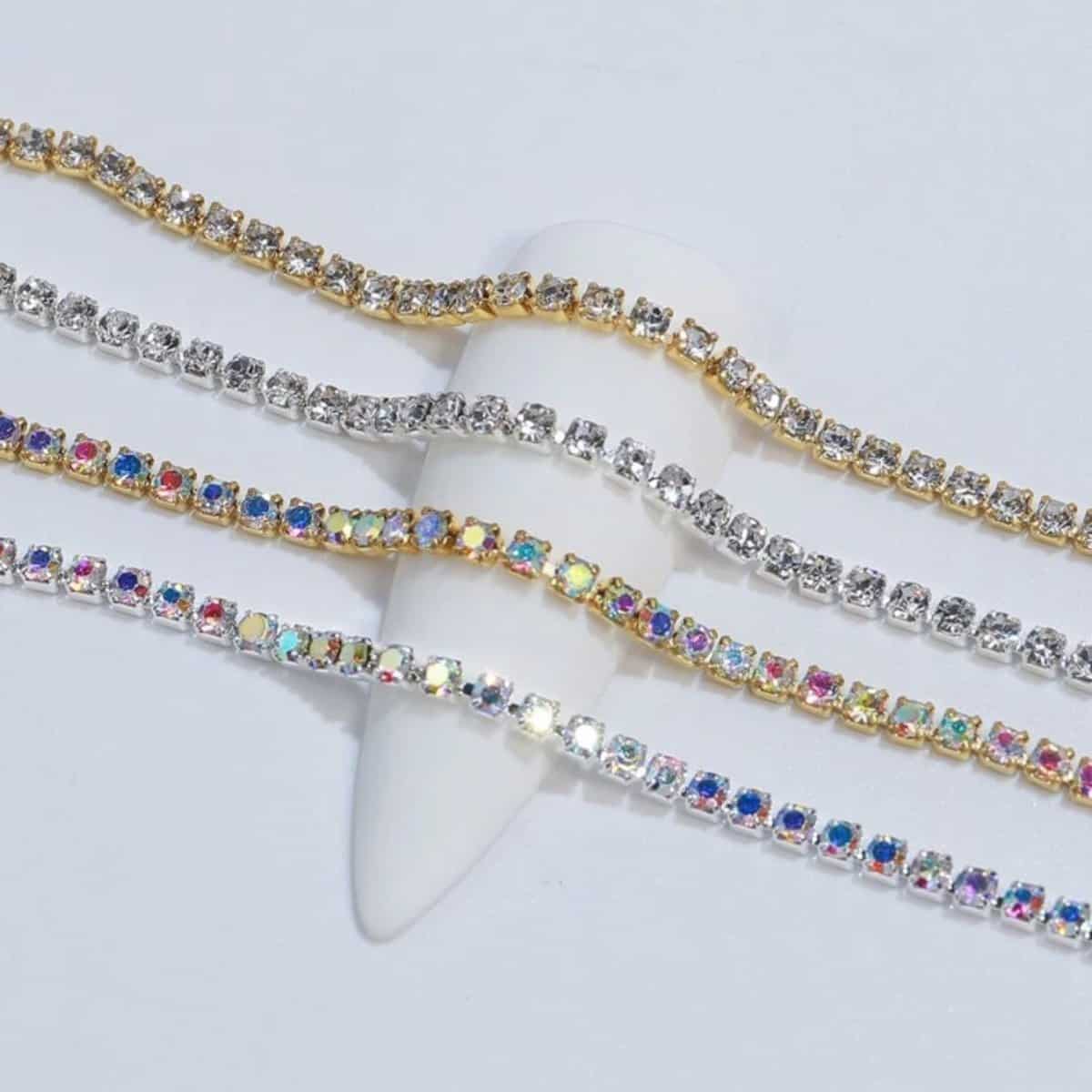 Gold Silver Shiny Diamonds Beads Rhinestone Metal Nail Art Chain
