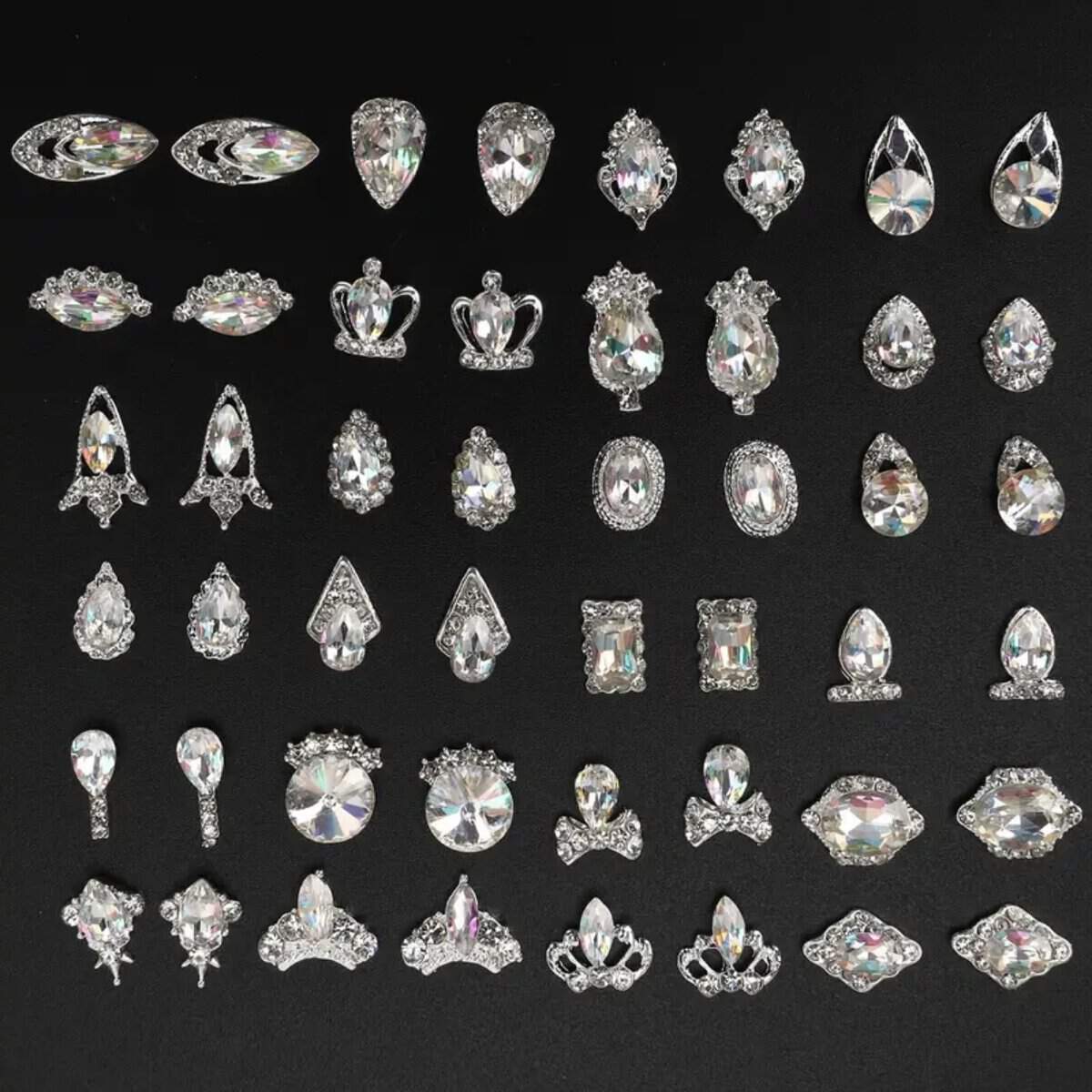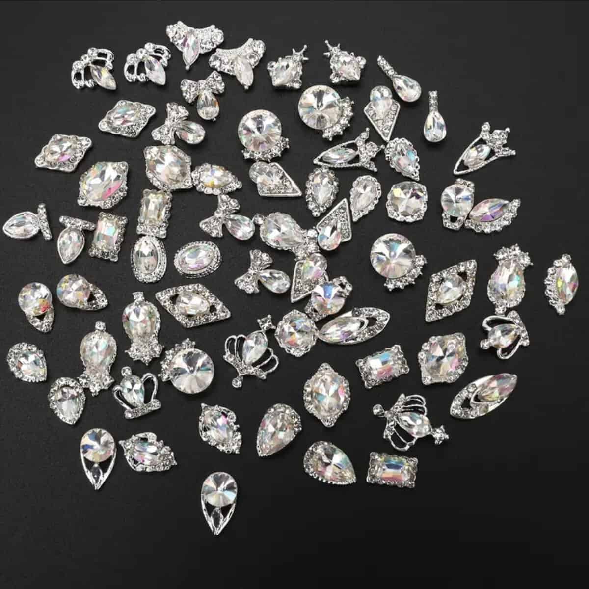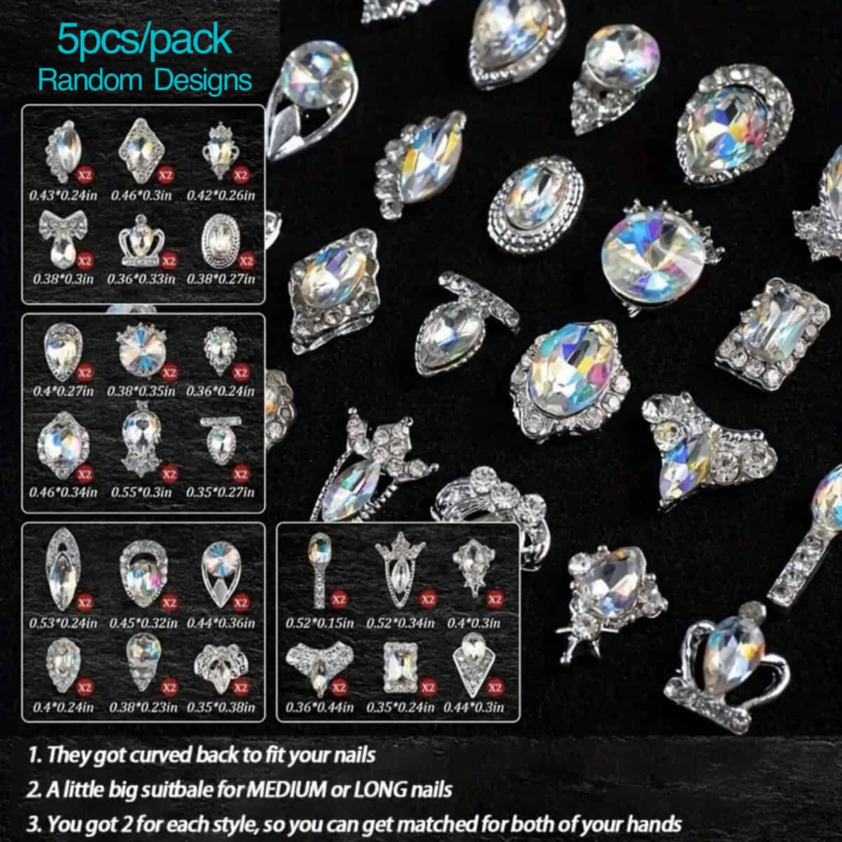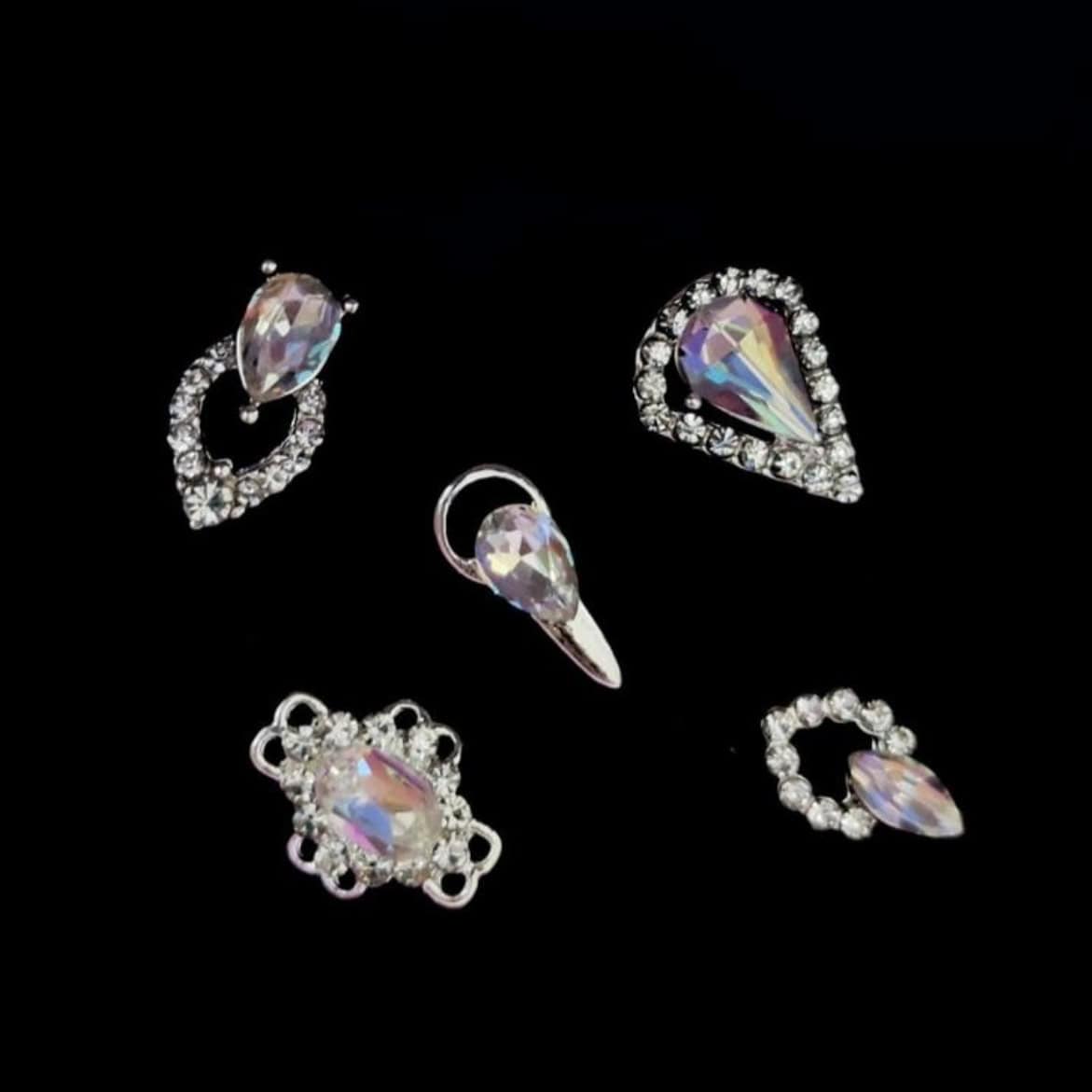 5pcs Random Design AB Clear Glass Silver Rhinestones