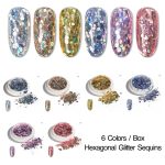 6 colors / Box Hexagonal Sequins Glitter Powder