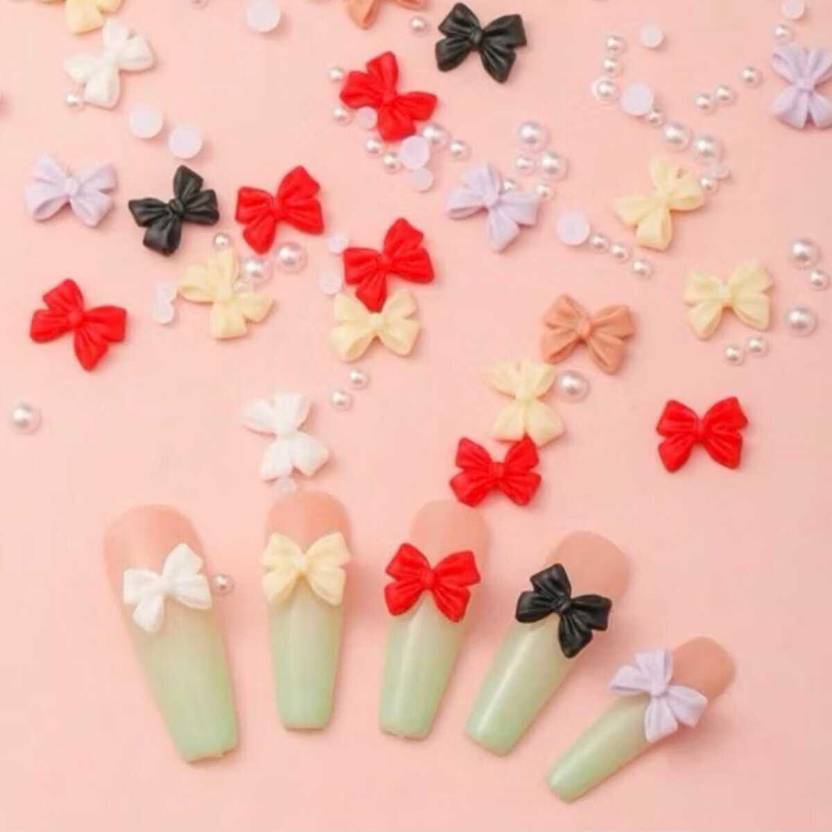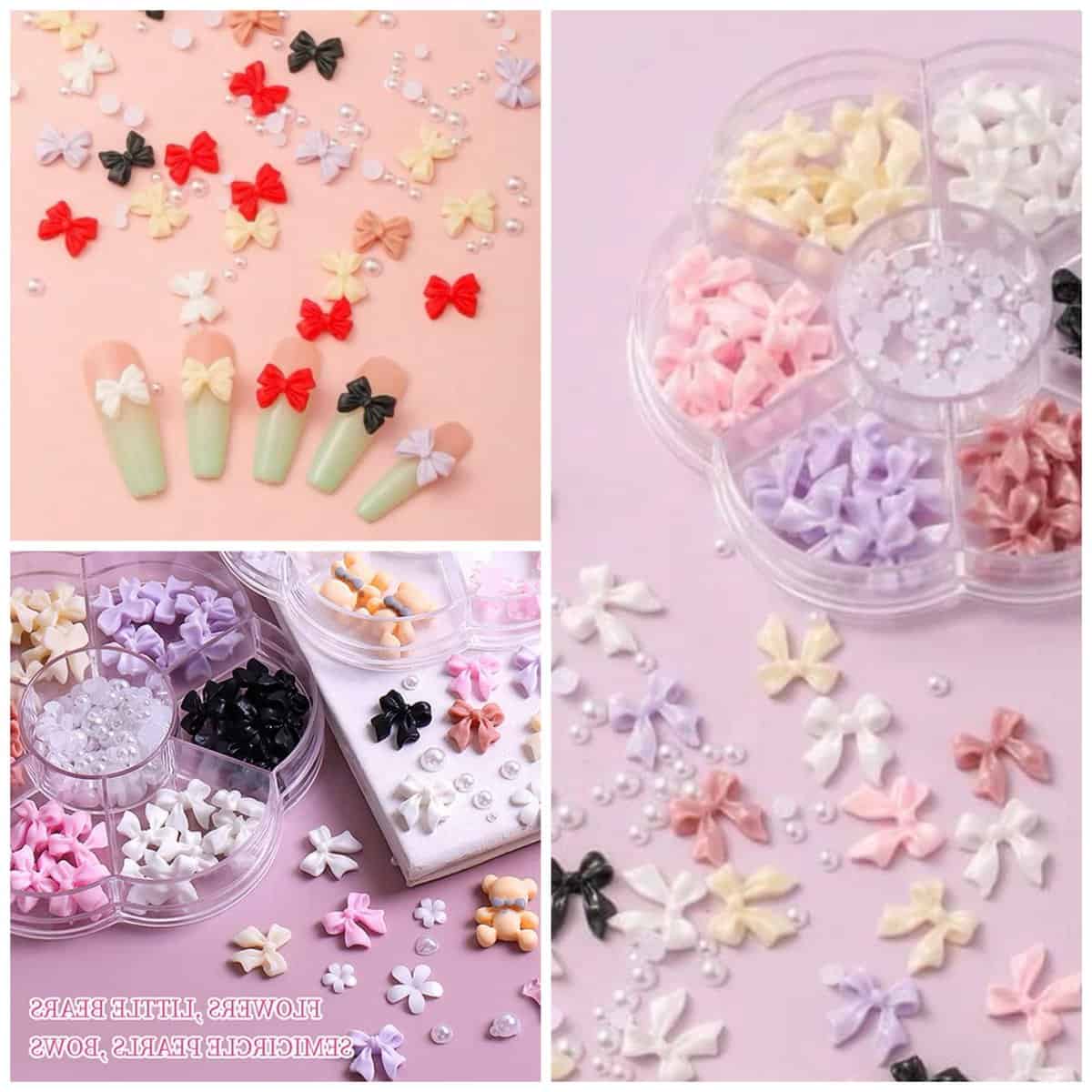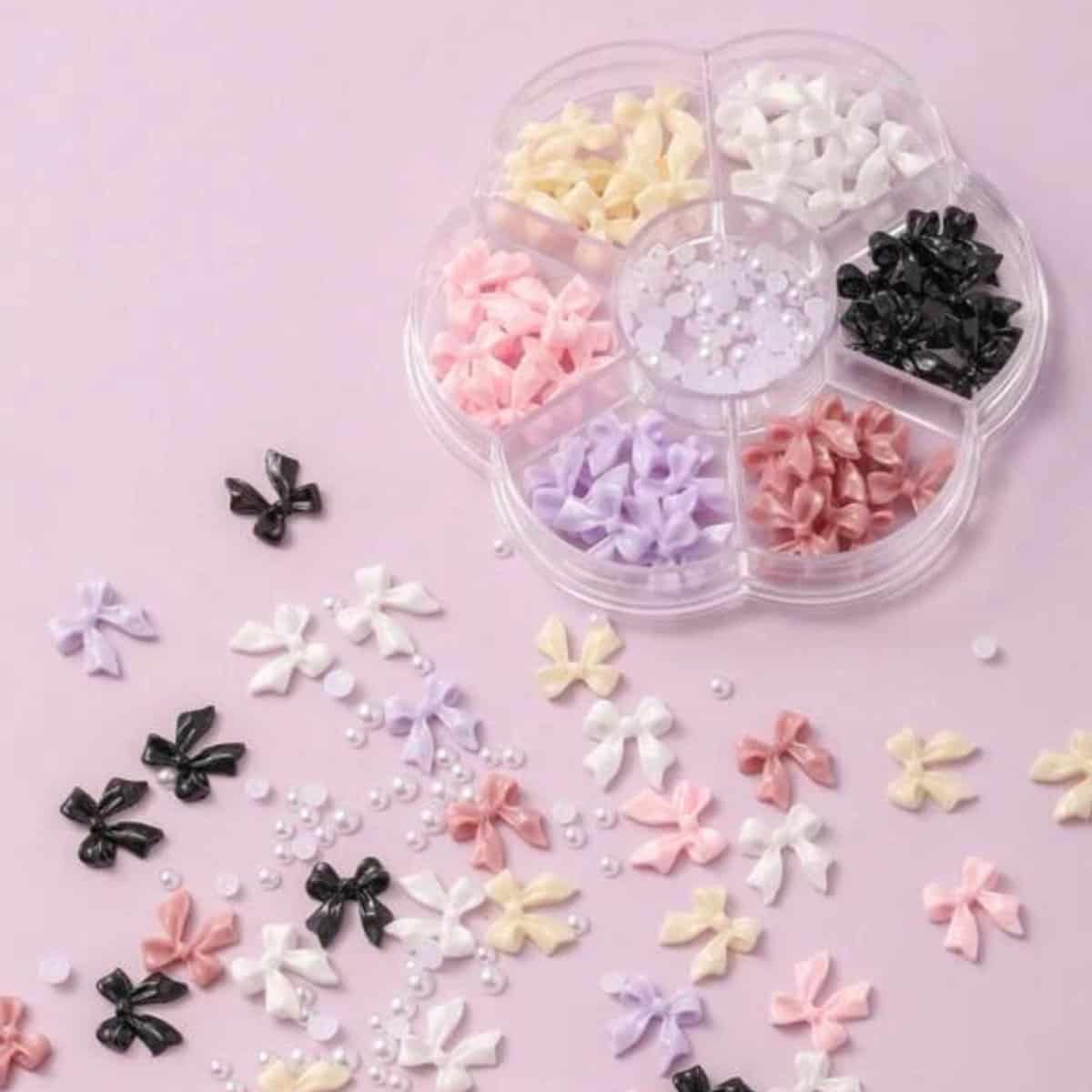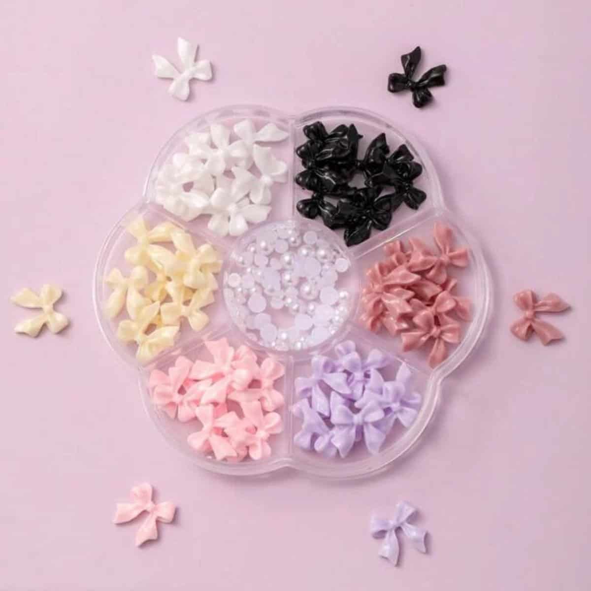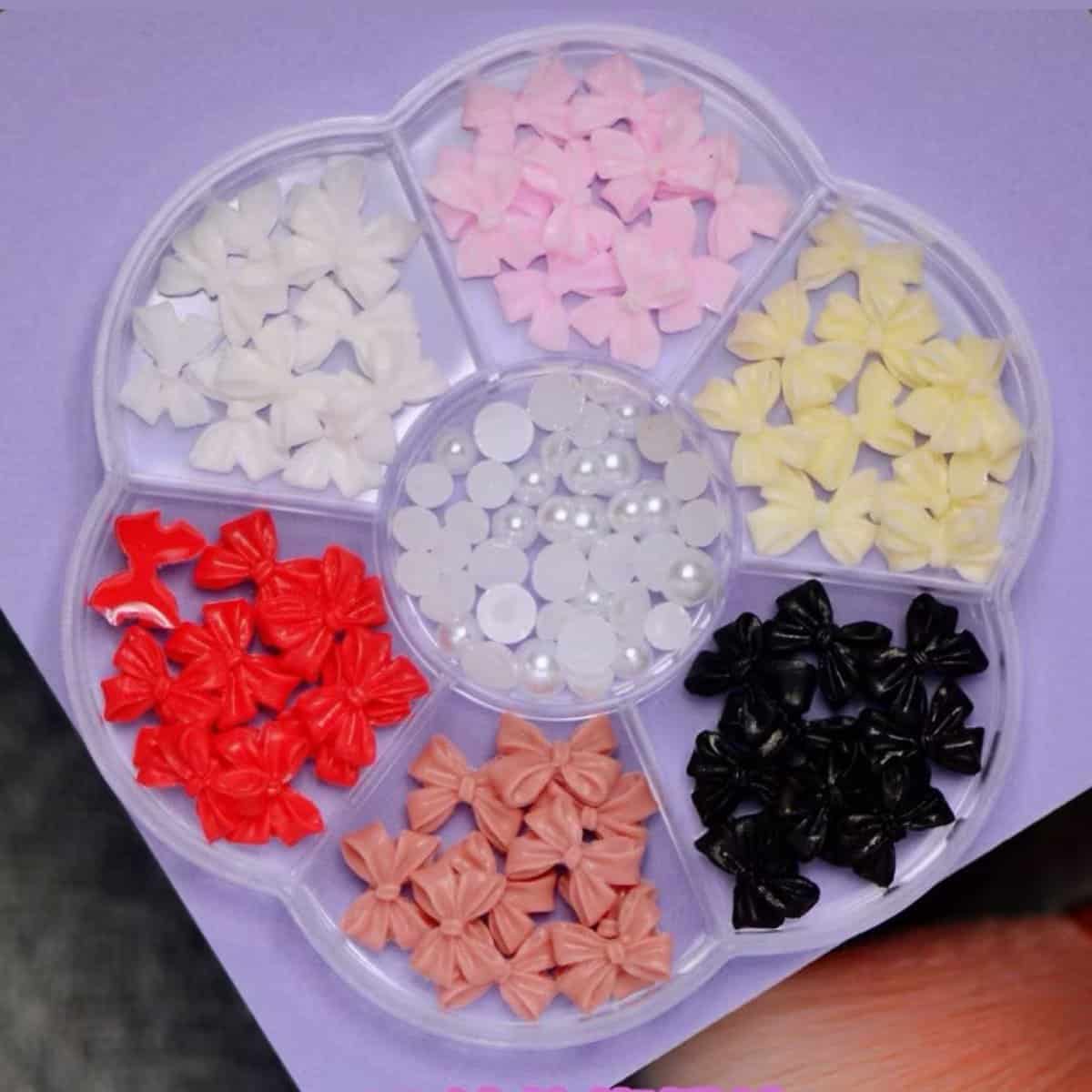 7 Grid Bow Ribbon with Pearls Nail Art Charms