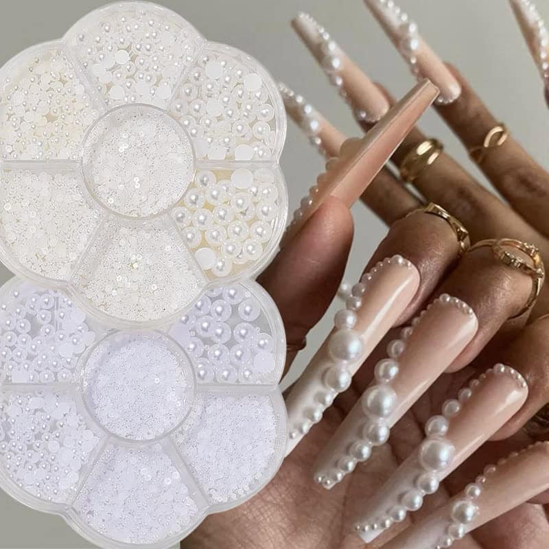 7 Grid Half or Full Pearl Beads Nail Art Decor