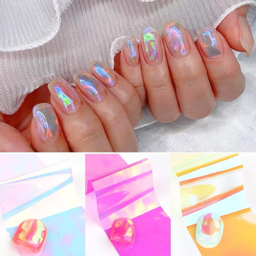 8pcs Aurora Holographic Broken Glass Foil