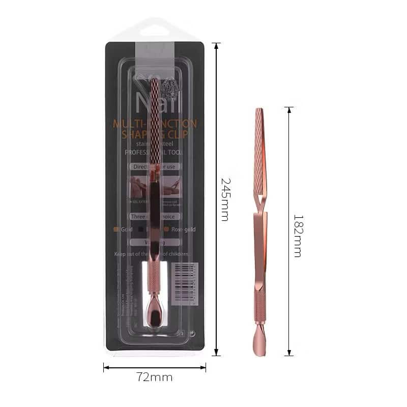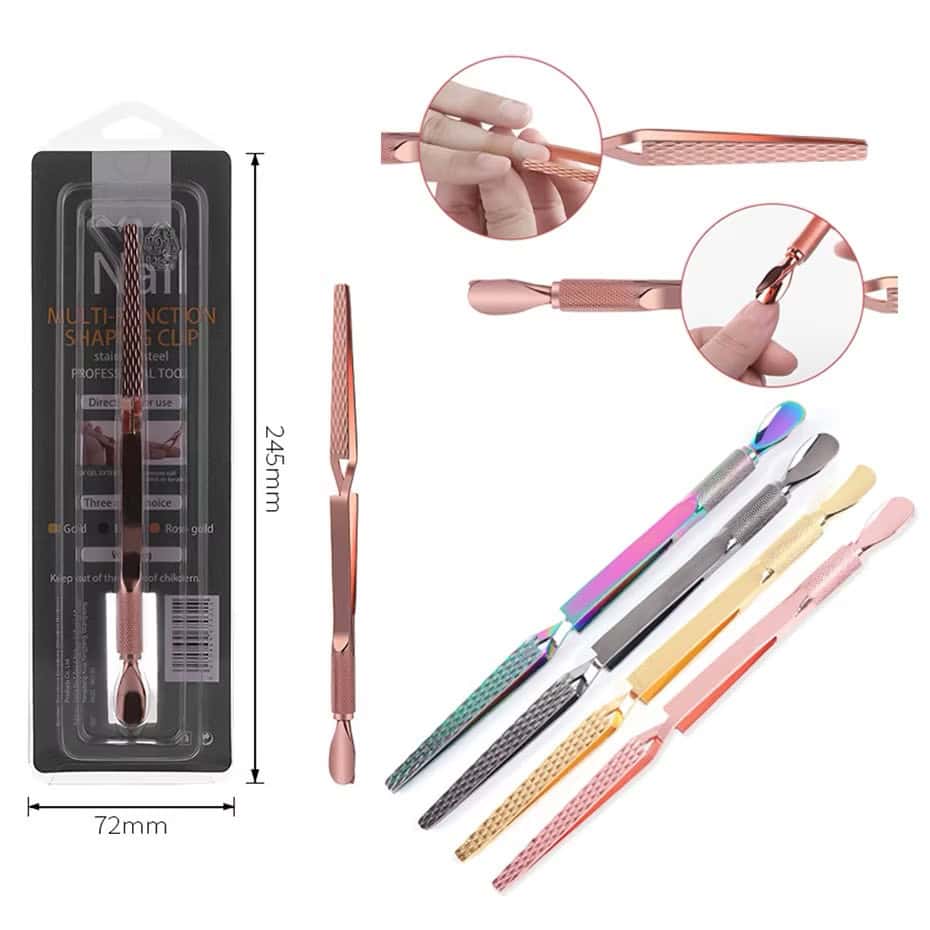 This three-in-one pusher can also be used as a scraper,pincher,holder for nail gluing,or to make the perfect c-curve.It’s made from high quality stainless steel.