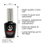 Step6. Choose your COLOR GEL and SHAKE WELL to mix the gel uniformly. Apply a THIN coat of the COLOR GEL Polish from the cuticle to the free edge (Remember to seal the edge of the nail). Cure the nails under the LED light for 60 seconds or a UV light for 2 minutes
