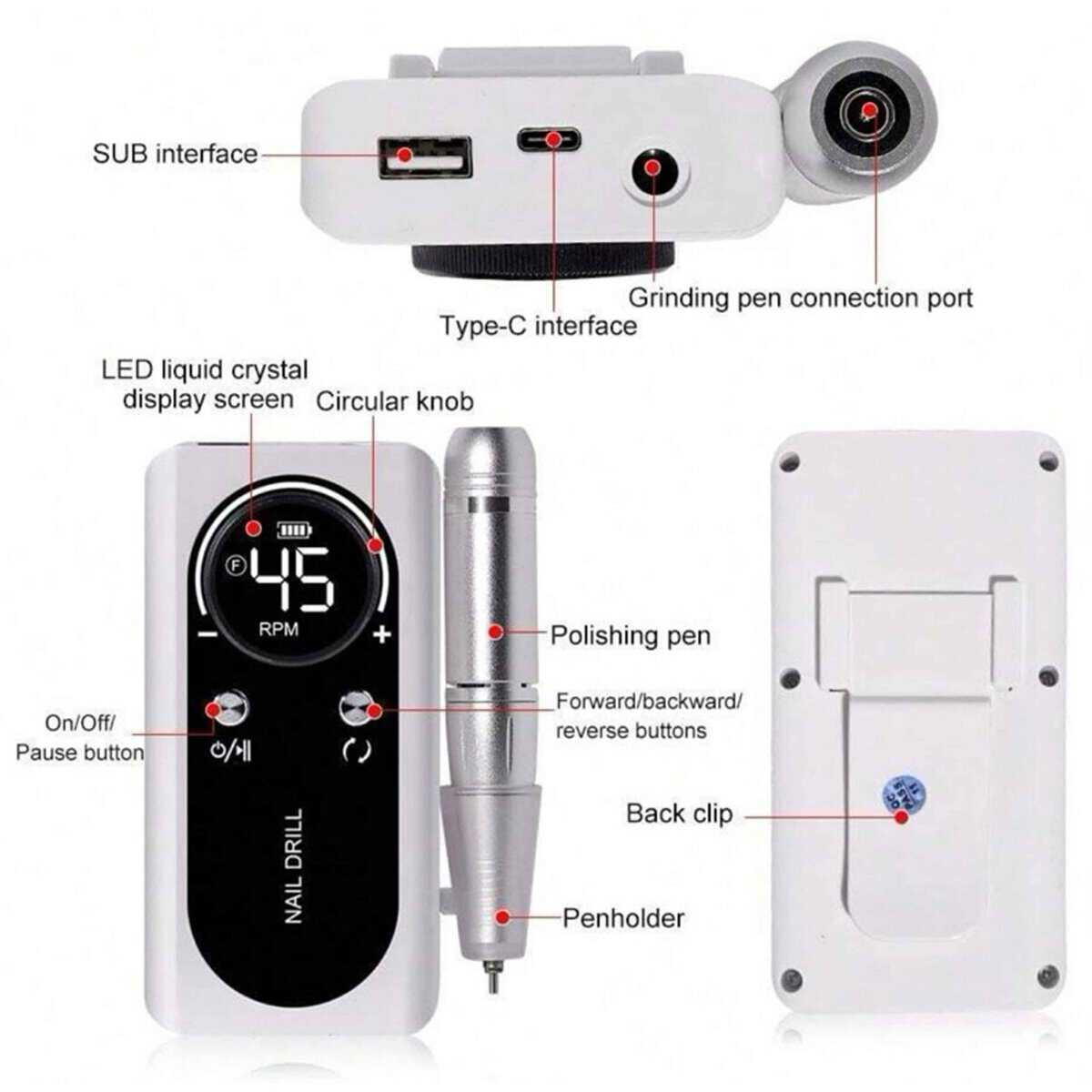Sleek Type Nail Drill Set Rechargeable Portable (45000RPM)