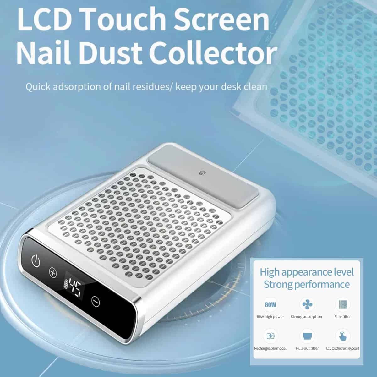 Rechargeable Nail Dust Collector Pro 80W LCD Nail Extractor Vacuum with Reusable Filter