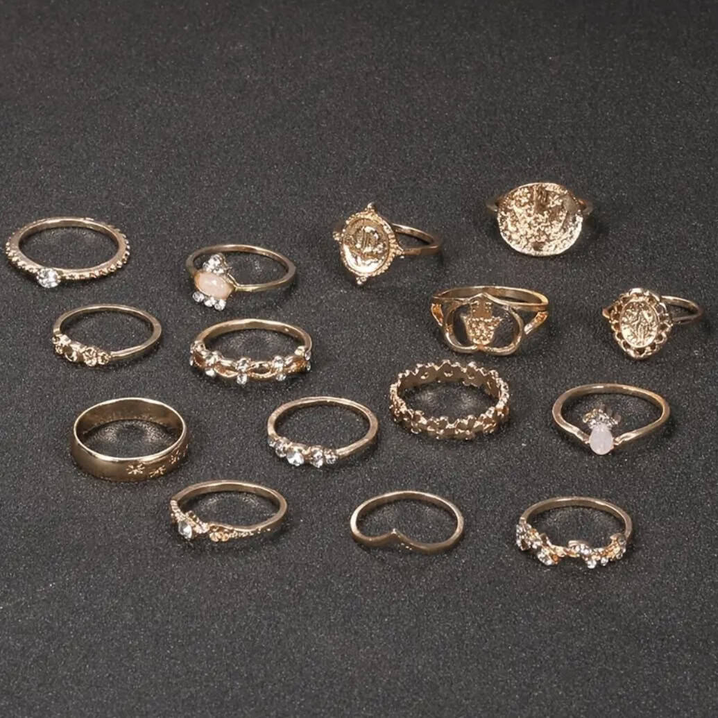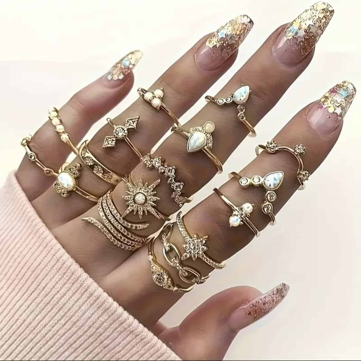 17pcs/15pcs/9pcs Set Ring Photo Nail Display Output European Boho Style