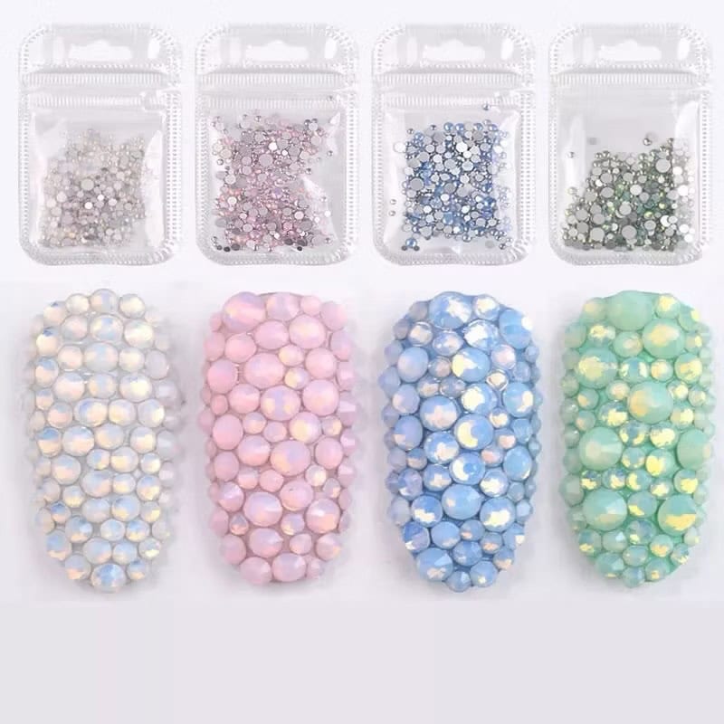 Mixed Size Opal Flat Back Glass Rhinestones