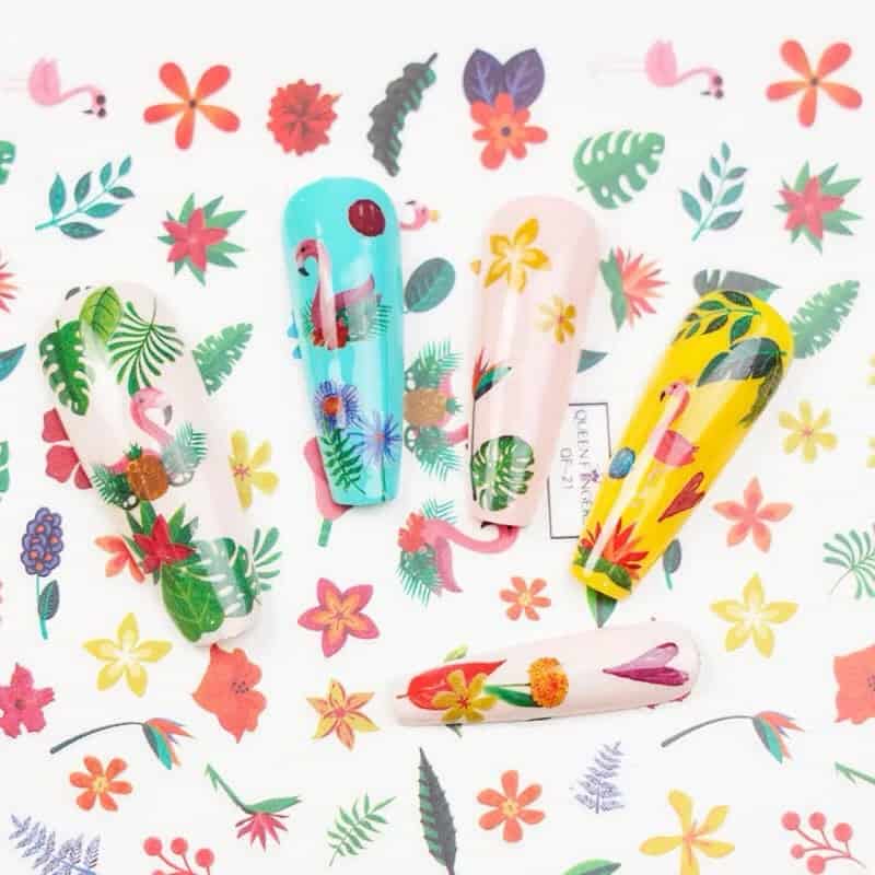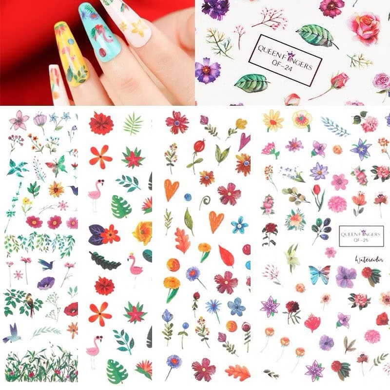 Vibrant Color Spring Flower & Leaves Nail Sticker
